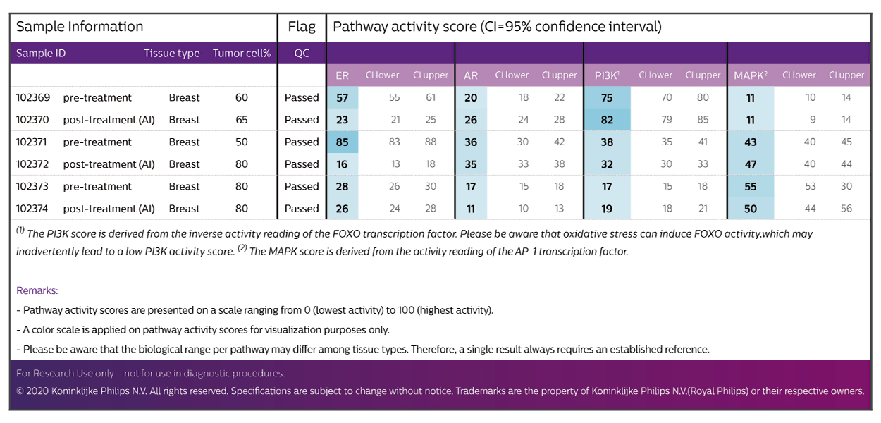 For more information about example experimental designs, please request the application note via oncosignal@philips.com.